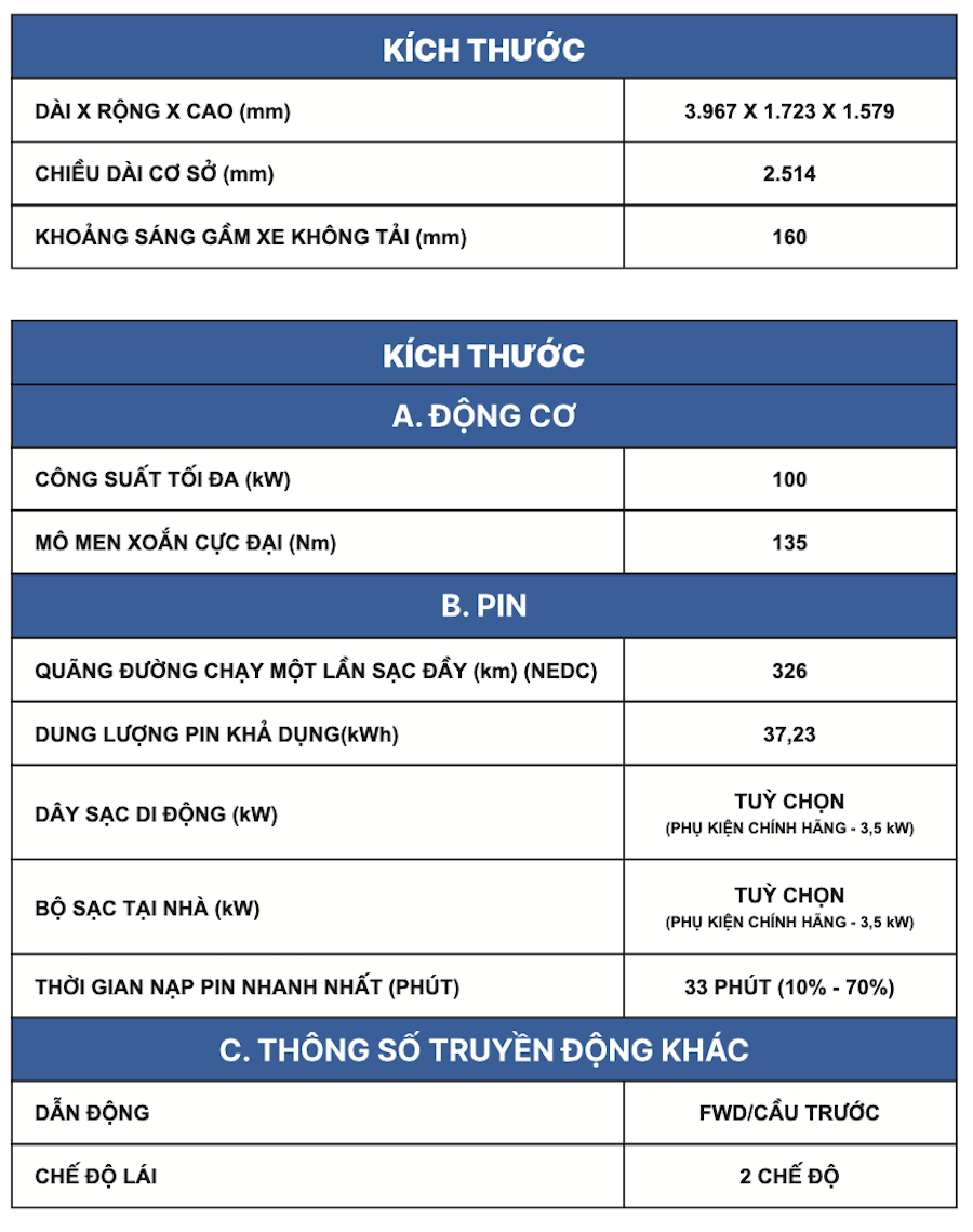 Động cơ điện công suất 100 kW mang lại khả năng tăng tốc mượt mà và vận hành êm ái, phù hợp với môi trường đô thị.