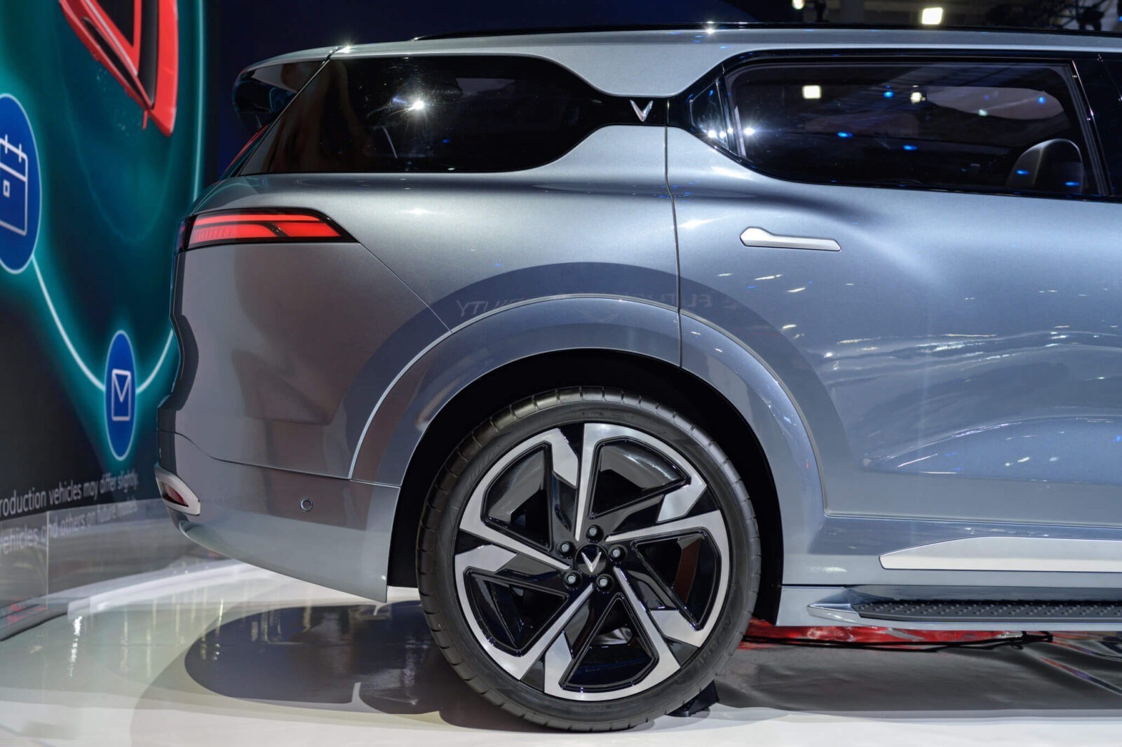 Tiến về phía đuôi VinFast VF9 hoàn toàn mới, các đường nét gân guốc tiếp tục xuất hiện, giúp hoàn chỉnh vẻ đẹp cơ bắp của một mẫu SUV full-size.