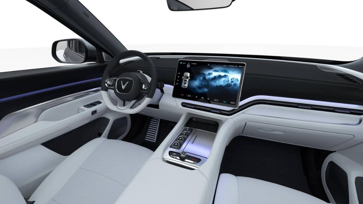 Danh sách tiện nghi trên VF 9 chưa được công bố đầy đủ. Trước mắt, mẫu SUV Full-size này sẽ sở hữu màn hình cảm ứng 15.4 inch đảm nhận điều chỉnh mọi tính năng trên xe. Đồng thời tích hợp tính năng Smart Services bao gồm: